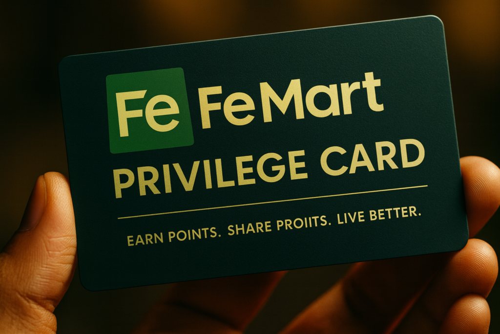 Fe Mart Trading Company Private Limited, incorporated in 2025, is redefining the supermarket experience through technology. Our mission is to build a meaningful, long-term relationship with our customers—supporting their health, education, and financial growth.